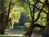 | Над прудом сколнясь травою |