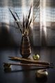 Натюрморт с розой и ветками лиственницы
