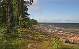 На каменистом берегу.