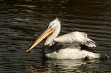 Портрет пеликана на чёрной воде